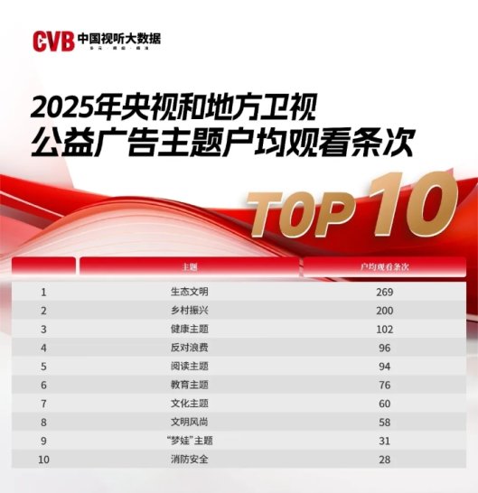 《中国视听大数据(CVB)2025年公益广告收视报告》