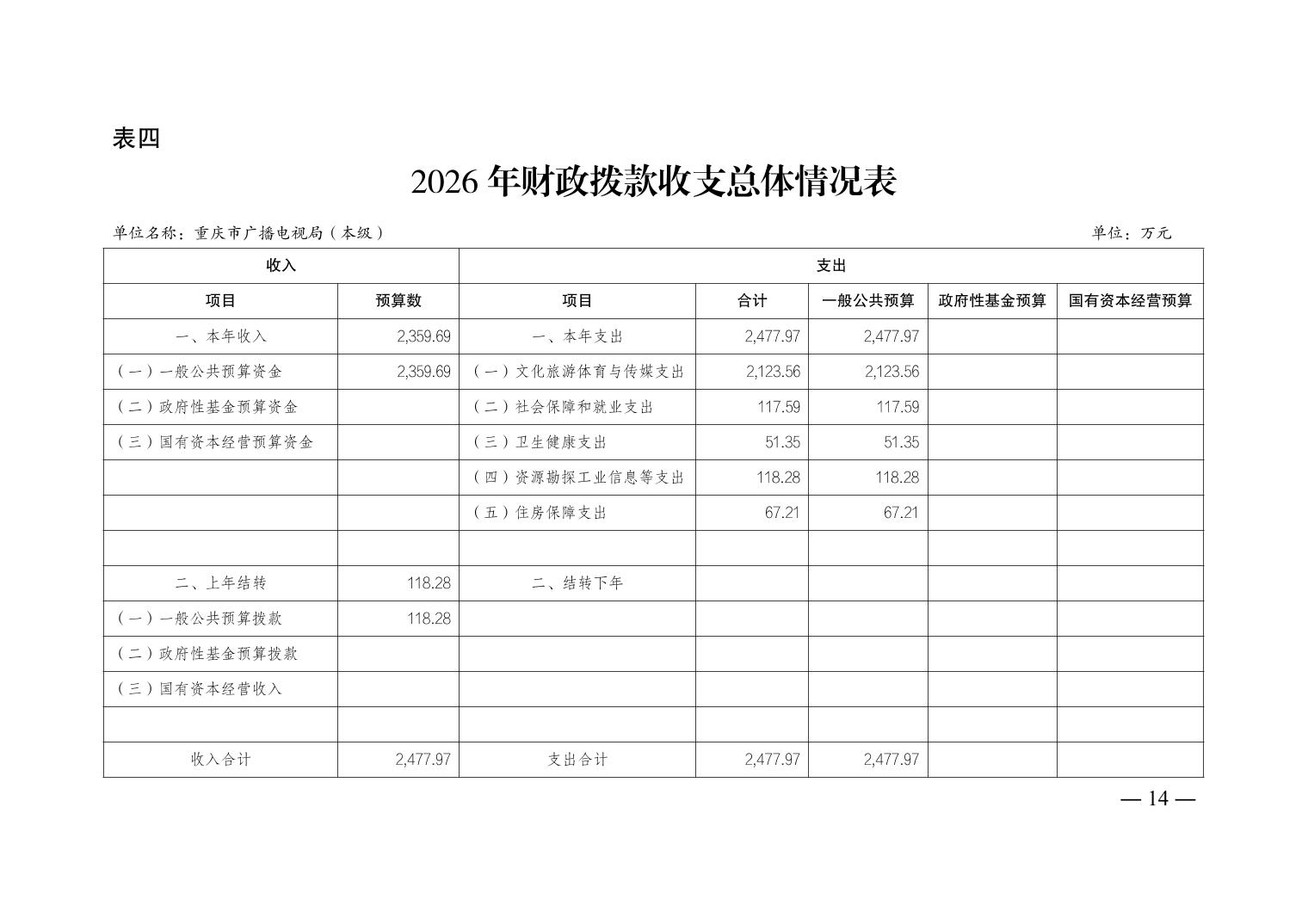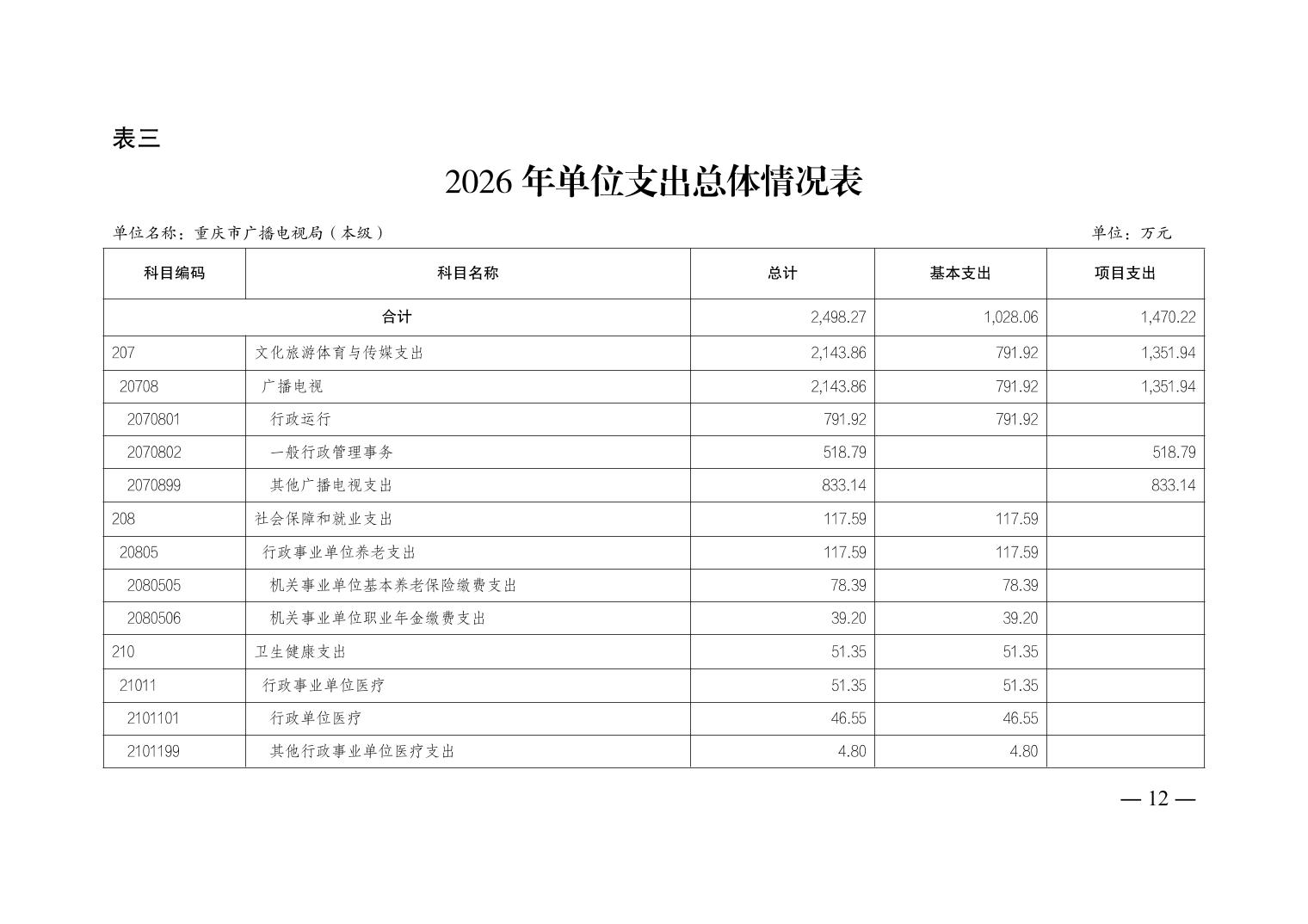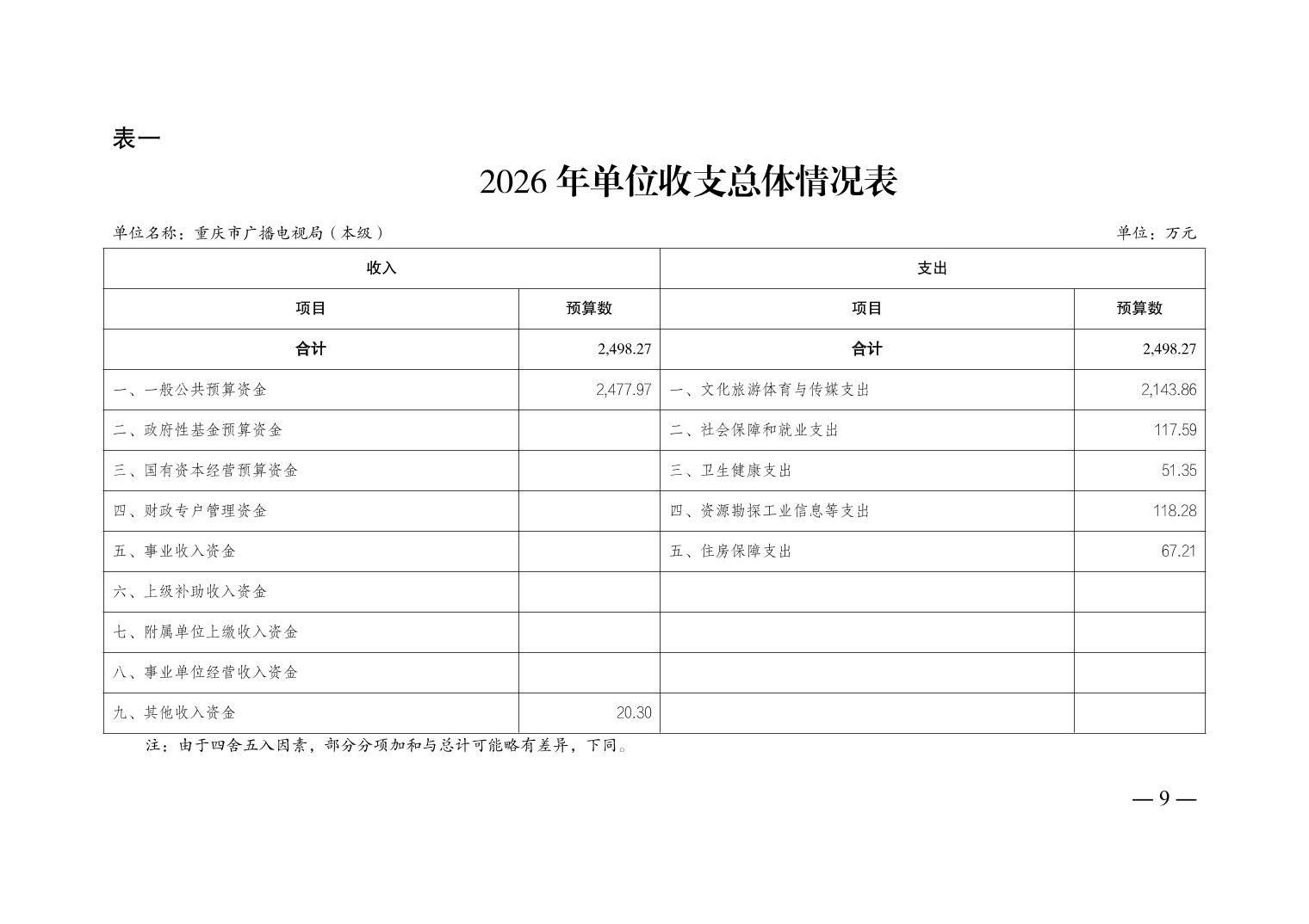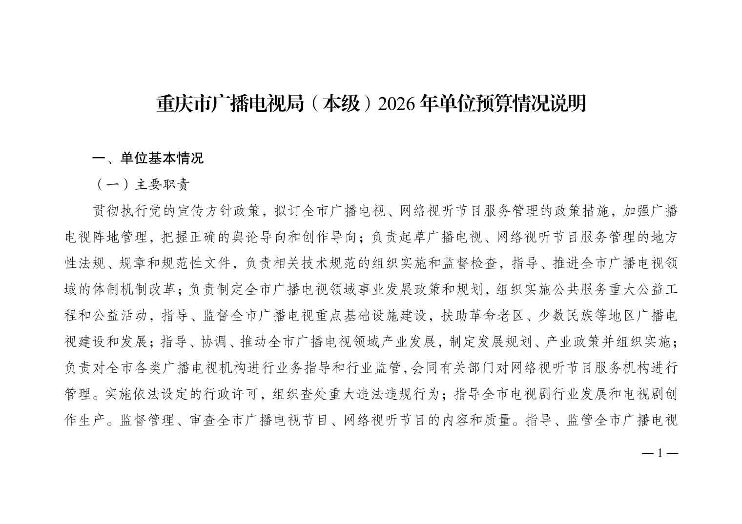 重庆市广播电视局(本级)2026年单位预算情况说明