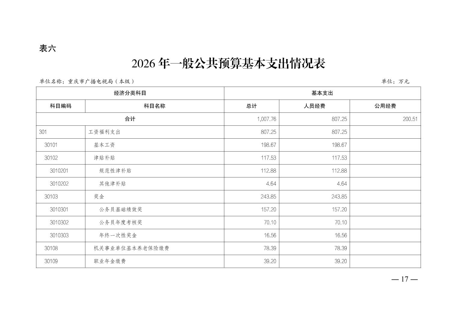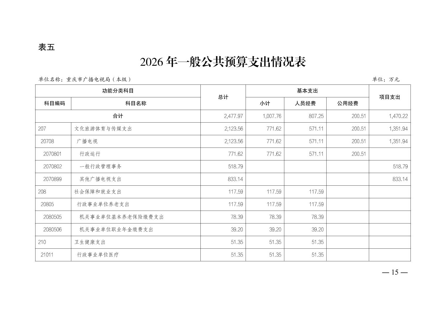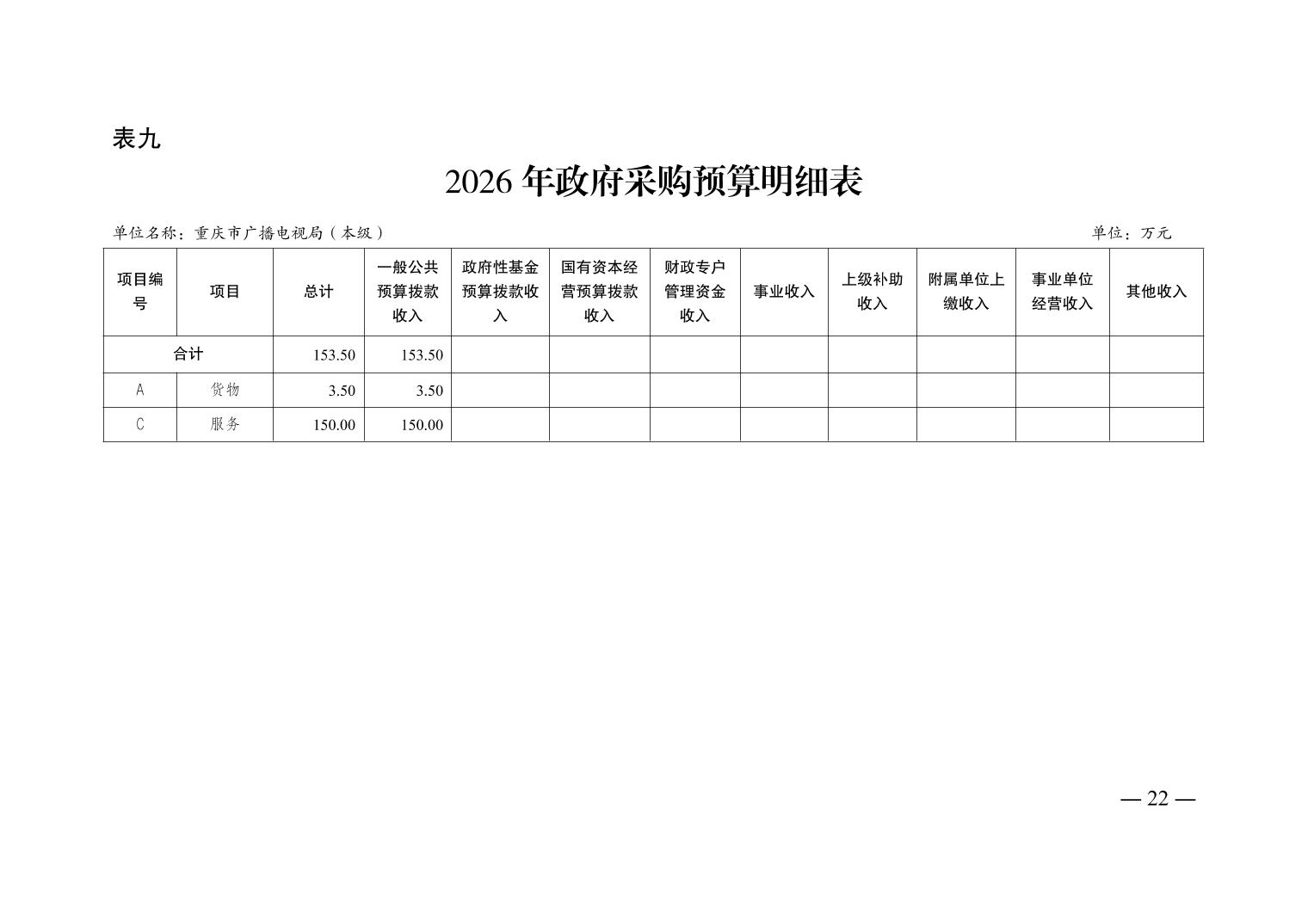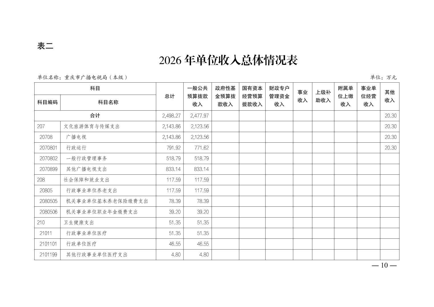 重庆市广播电视局(本级)2026年单位预算情况说明